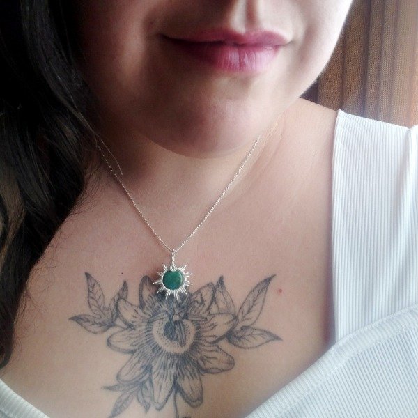 Amuleto Sol con piedra Crisocola trabajado en Plata 925.