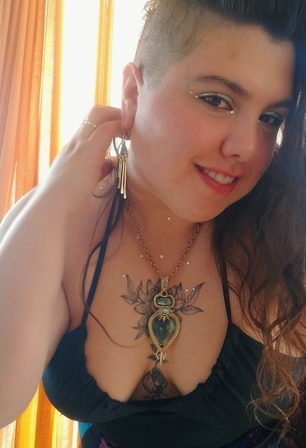 Amuleto tótem trabajado en metal Bronce con piedras naturales: