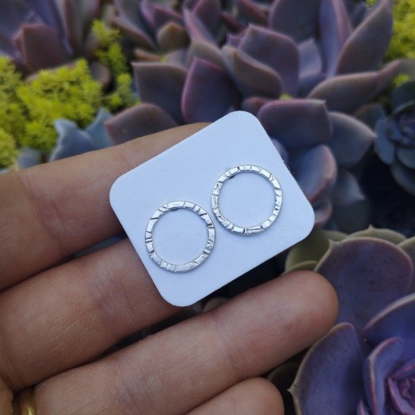 Par de aros forma "O" con textura, trabajados en Plata 925.