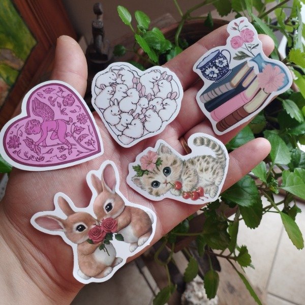 Cinco piezas de stickers con diseño cute 🐇🩷🧸