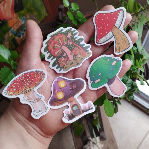 Cinco piezas de stickers con diseño fungi 🍄🍄‍🟫