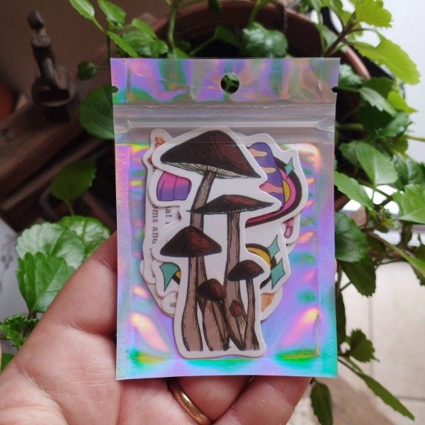 Cinco piezas de stickers con diseño fungi 🍄🍄‍🟫