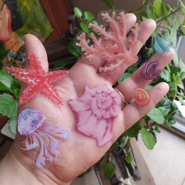 Cinco piezas de stickers con diseño de seres del mar 🌊