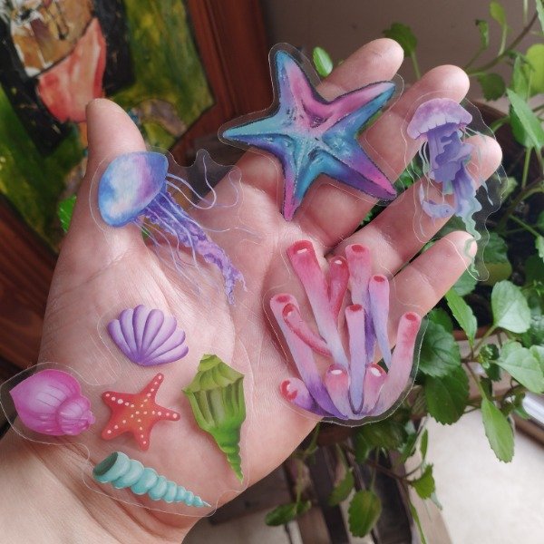 Cinco piezas de stickers con diseño de seres del mar 🌊