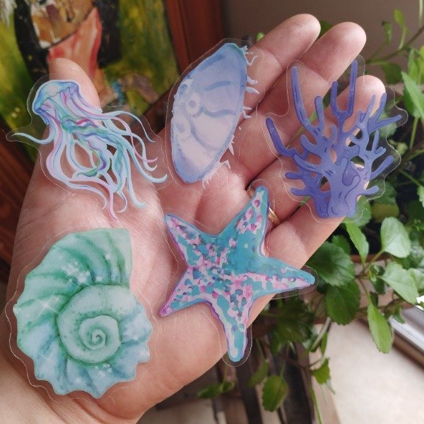 Cinco piezas de stickers con diseño de seres del mar 🌊