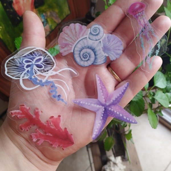 Cinco piezas de stickers con diseño de seres del mar 🌊