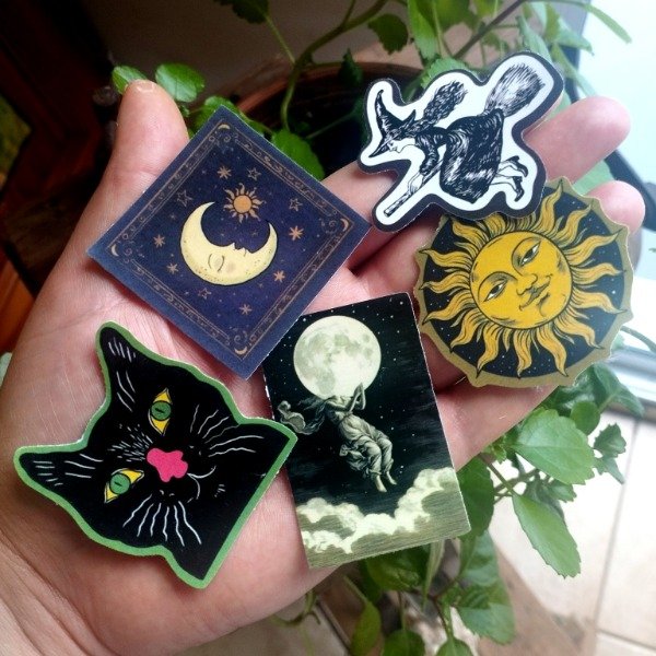 Cinco piezas de stickers con diseño witch 🔮🧙‍♀️🧹