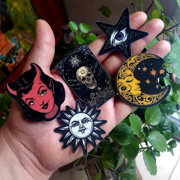 Cinco piezas de stickers con diseño witch 🔮🧙‍♀️🧹
