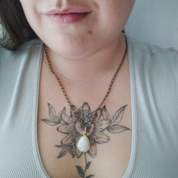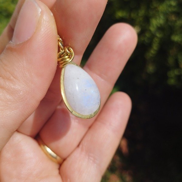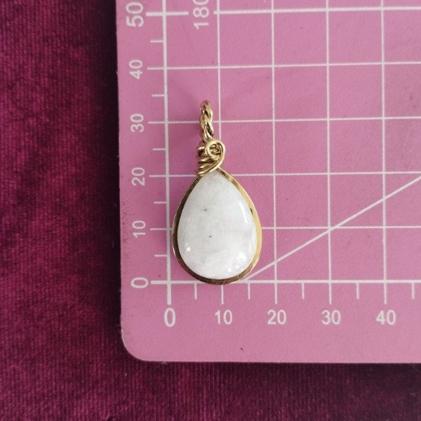 Dije colgante trabajado en metal bronce con piedra luna natural forma gota ✨