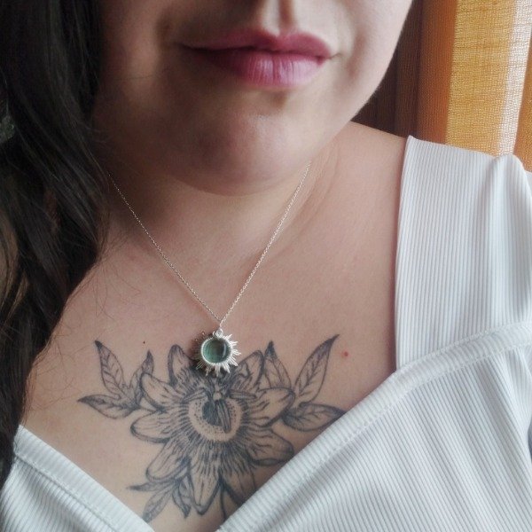 Amuleto Sol con piedra Fluorita Verde trabajado en Plata 925.