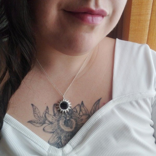 Amuleto Sol con piedra Fluorita Violeta trabajado en Plata 925.