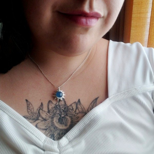 Amuleto Sol con piedra Onix Cielo trabajado en Plata 925.