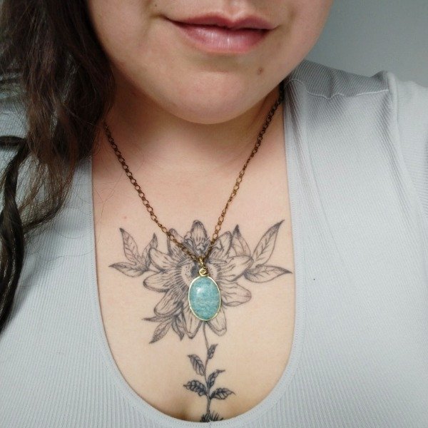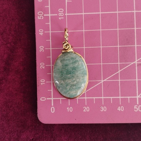 Dije colgante trabajado en metal bronce con piedra natural Amazonita 🩵